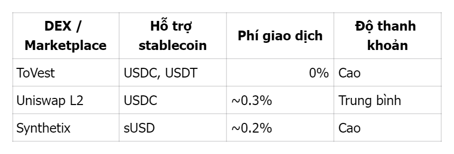 DEX là sàn giao dịch phi tập trung, nơi người dùng trực tiếp hoán đổi tài sản on‑chain mà không cần trung gian. Ví dụ, ToVest cho phép mua token cổ phiếu bằng USDC tức thì, không phí hoa hồng và hỗ trợ thanh khoản ổn định.
