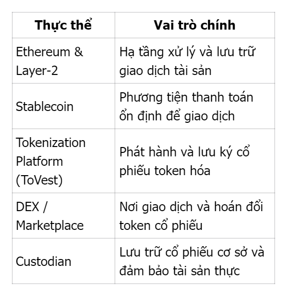 Những thực thể quan trọng cần biết khi mua cổ phiếu on‑chain bằng stablecoin