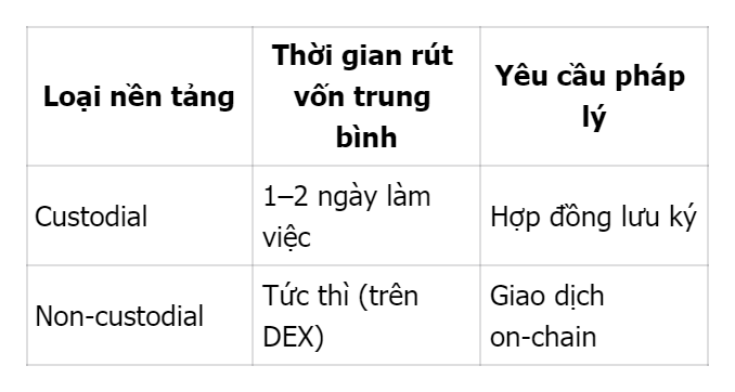Để rút vốn, bạn có thể bán token cổ phiếu lấy stablecoin trên marketplace hoặc yêu cầu đốt token và hoàn trả fiat thông qua đối tác lưu ký.