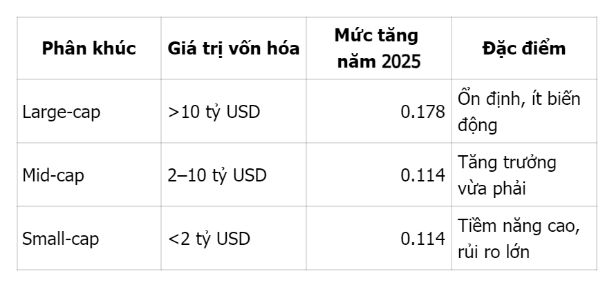 - Mid-cap: 2–10 tỷ USD.