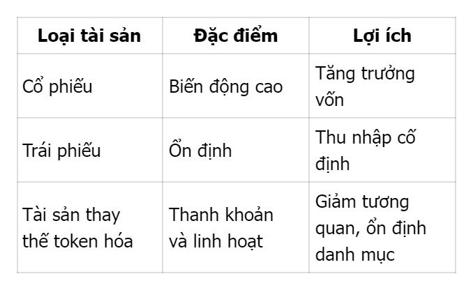 Bạn có thể tạo sự cân bằng bằng cách kết hợp token hóa cổ phiếu trả cổ tức với REIT hoặc trái phiếu số trên ToVest để duy trì dòng tiền ổn định hơn.