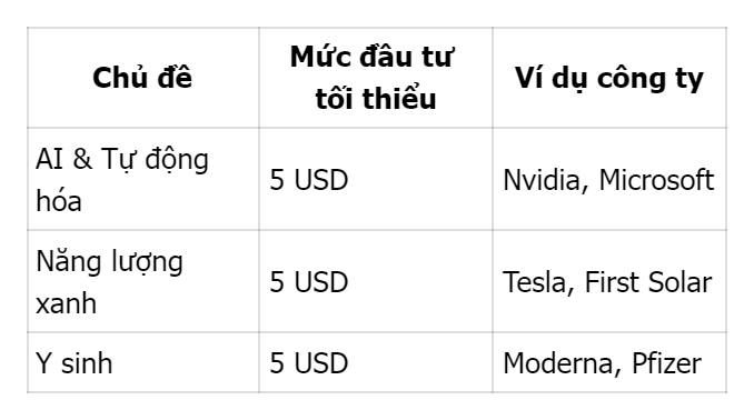 Rổ cổ phiếu chủ đề token hóa giúp bạn tiếp cận xu hướng mới như AI, y sinh hay năng lượng sạch mà không cần nguồn vốn lớn.