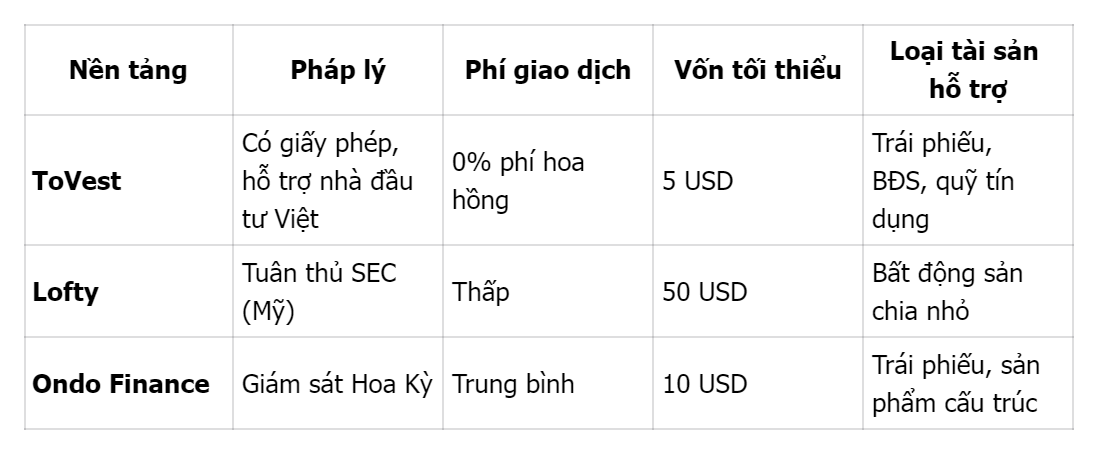 Ưu tiên nền tảng như ToVest, nơi kết hợp công nghệ lưu ký an toàn và tuân thủ quốc tế, giúp người dùng tại Việt Nam tham gia đầu tư RWA hợp pháp và chi phí thấp.