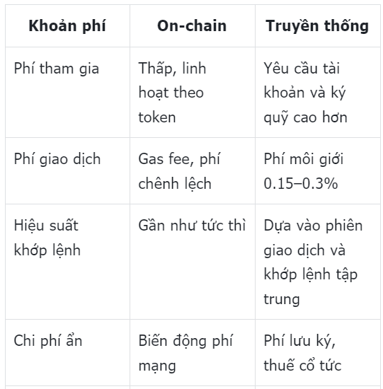 Chi phí và hiệu suất giao dịch trên nền tảng on-chain và sàn truyền thống