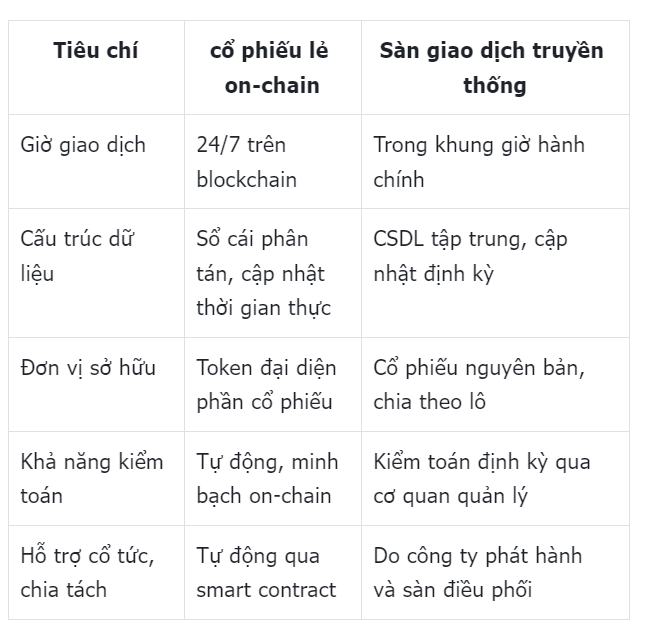 Cổ Phiếu Lẻ On-chain So Sánh Với Sàn Truyền Thống