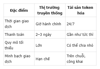 - Phân mảnh và giao dịch 24/7: Token hóa biến quyền sở hữu lớn thành những phần nhỏ, tạo thanh khoản liên tục trên thị trường toàn cầu.