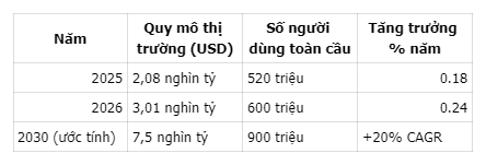 - Stablecoin: Các đồng tiền ổn định (như USD stablecoin) giúp tạo kênh thanh toán hiệu quả; đến năm 2026, quy mô thị trường stablecoin được dự đoán đạt 1 nghìn tỷ USD.