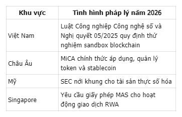 Sự minh bạch pháp lý là yếu tố nền tảng cho thanh khoản bền vững. Năm 2026, nhiều quốc gia ban hành hướng dẫn giúp tài sản số hòa nhập sâu hơn vào hệ thống tài chính chính thống.