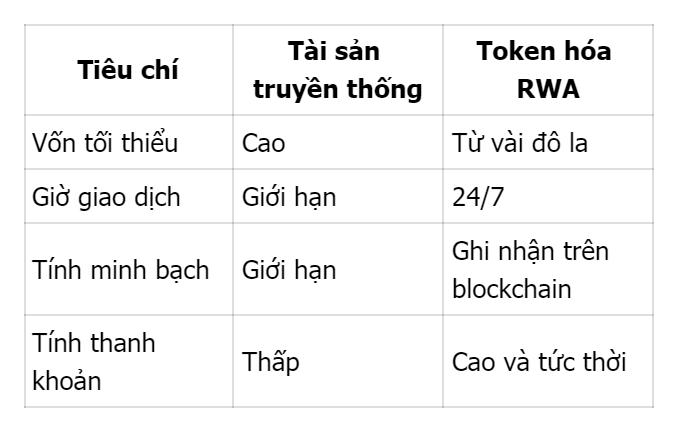 Công nghệ token hóa tài sản giúp phân mảnh quyền sở hữu, minh bạch giao dịch, và tạo ra thị trường hoạt động liên tục. Khi giá trị thị trường RWA dự kiến vượt mốc 3 nghìn tỷ USD vào năm 2026 và hướng tới 10 nghìn tỷ USD vào năm 2030, mô hình này không chỉ thể hiện tiềm năng toàn cầu mà còn mở hướng đi mới cho các nhà đầu tư Việt Nam trong kỷ nguyên đầu tư kỹ thuật số minh bạch hơn.