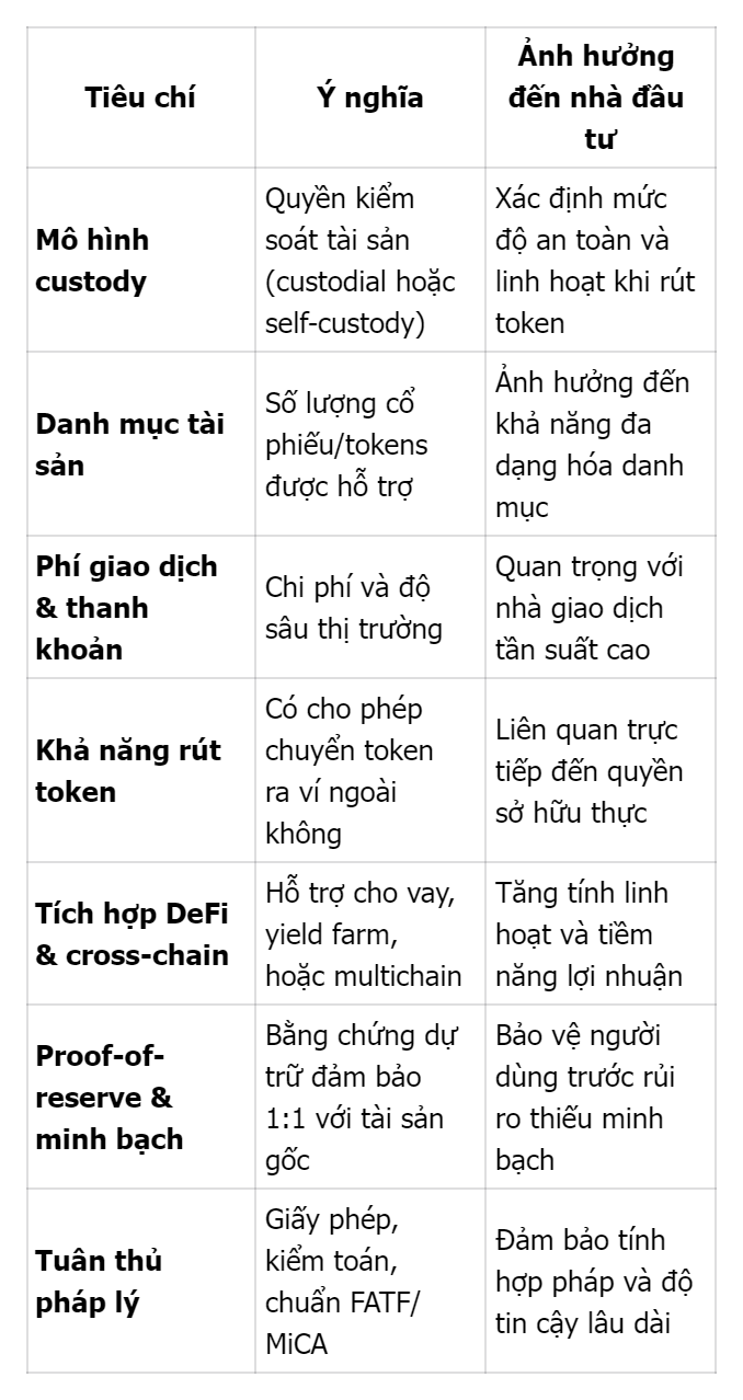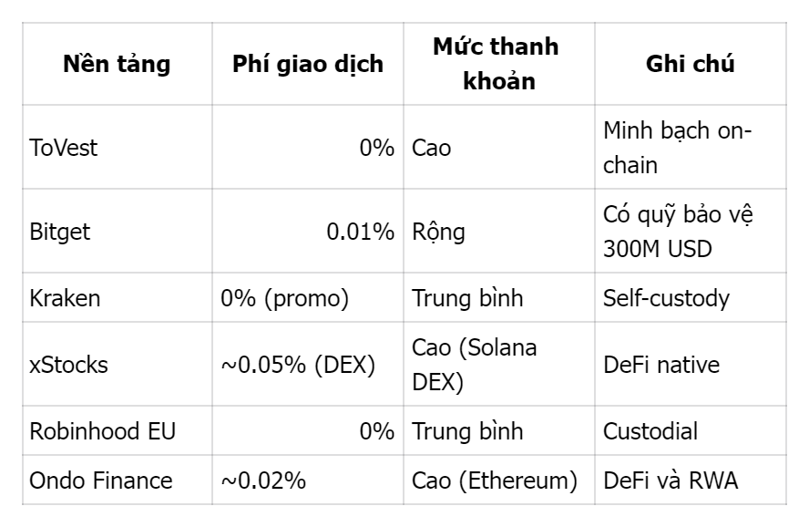 Tiêu chí so sánh các nền tảng tokenized stocks