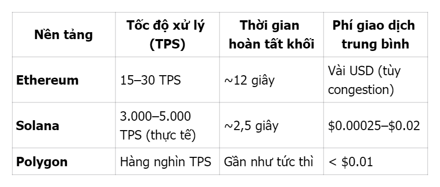 Hiệu năng và chi phí giao dịch trên Ethereum, Solana và Polygon