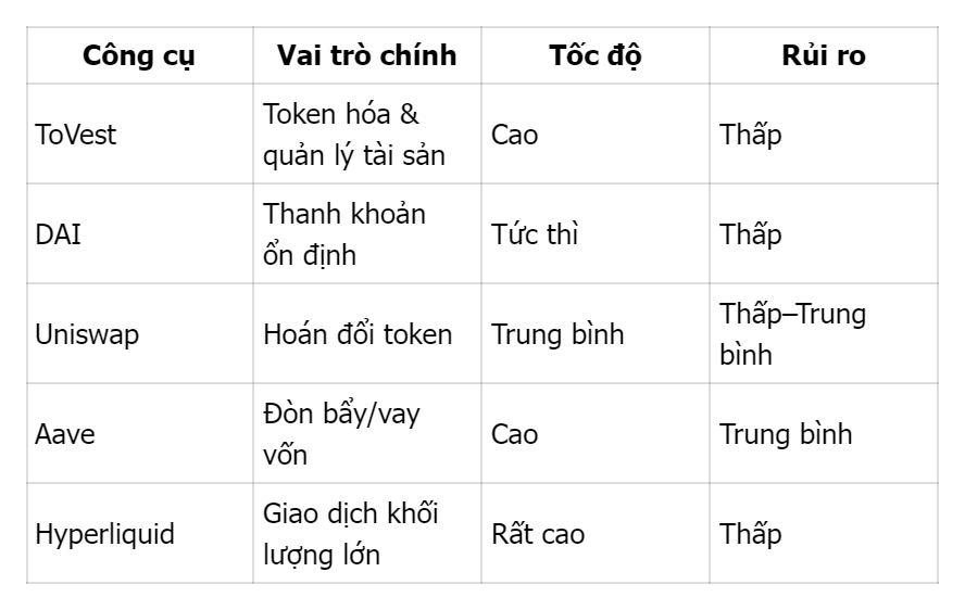 Tổng thể, kết hợp stablecoin, sàn DEX và giao thức lending đang mang lại sự cân bằng tốt nhất giữa tốc độ, linh hoạt và khả năng kiểm soát rủi ro.