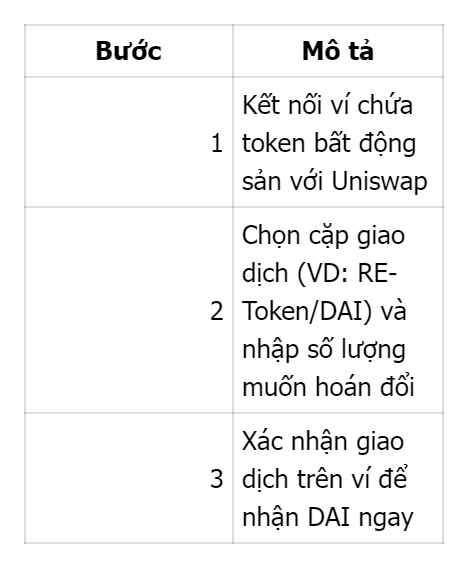 Nhà đầu tư có thể sử dụng Uniswap để đổi token bất động sản sang DAI chỉ trong vài bước: