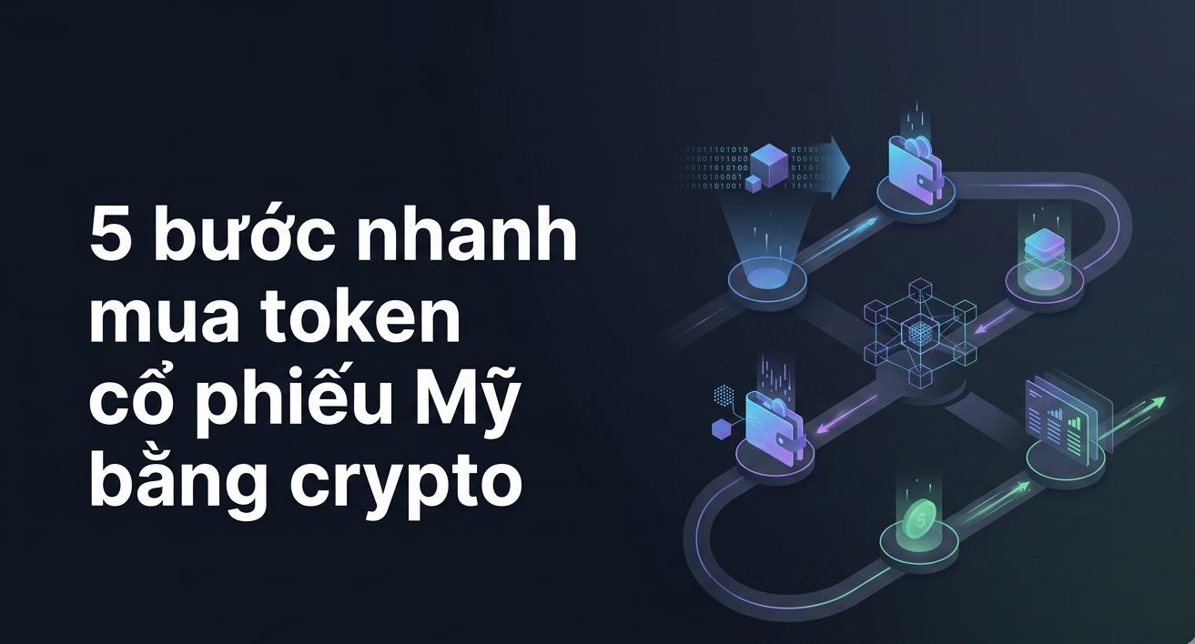 Sự kết hợp giữa tài chính truyền thống và blockchain đang mở ra cơ hội mới: mua token cổ phiếu Mỹ bằng crypto. Thay vì cần đến tài khoản chứng khoán quốc tế, nhà đầu tư giờ có thể sở hữu các cổ phiếu token hóa của những công ty như Tesla, Apple hay Microsoft chỉ bằng Bitcoin, Ethereum hoặc stablecoin. Bài viết này từ ToVest hướng dẫn bạn qua 5 bước thực tế – từ chuẩn bị ví, nạp crypto, đến đặt lệnh và quản lý tài sản – giúp bạn tham gia đầu tư tokenized US stocks an toàn, tuân thủ và hiệu quả.