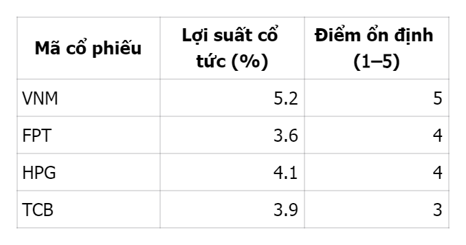 Trong bối cảnh thị trường nhạy cảm với chính sách lãi suất, cổ phiếu blue-chip và cổ tức cao trở thành “lá chắn” cho danh mục. Nhóm cổ phiếu vốn hóa lớn, có nền tảng lợi nhuận bền vững giúp giảm biên độ dao động và duy trì dòng tiền ổn định.