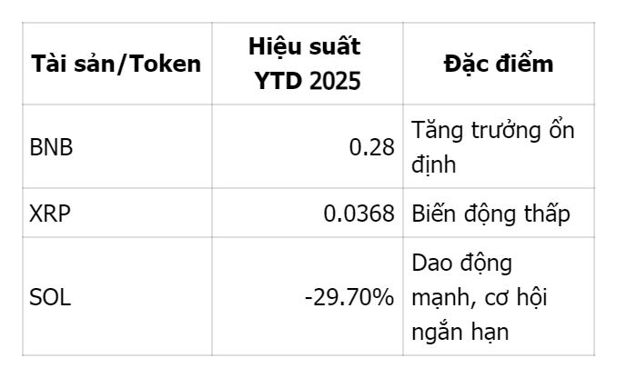 Blockchain là thị trường còn non trẻ, vì vậy mức dao động giá lớn vừa thách thức vừa mang lại cơ hội sinh lời cao. Trong năm 2025, BNB tăng 28%, XRP đạt +3.68%, trong khi Solana biến động mạnh – giảm 29.7% sau khi đạt đỉnh 260 USD.