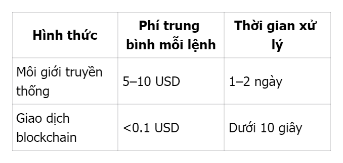 Phí giao dịch blockchain thường thấp hơn rõ rệt so với môi giới truyền thống, giúp nhà đầu tư quốc tế tối ưu chi phí và lợi nhuận.