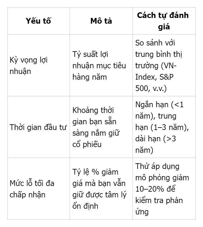 Trước khi bắt đầu, bạn cần biết mình đang đầu tư để làm gì và chấp nhận được rủi ro ở mức nào. Mục tiêu tài chính có thể là tăng trưởng vốn dài hạn, tạo thu nhập định kỳ, hay bảo toàn tài sản trong giai đoạn biến động.