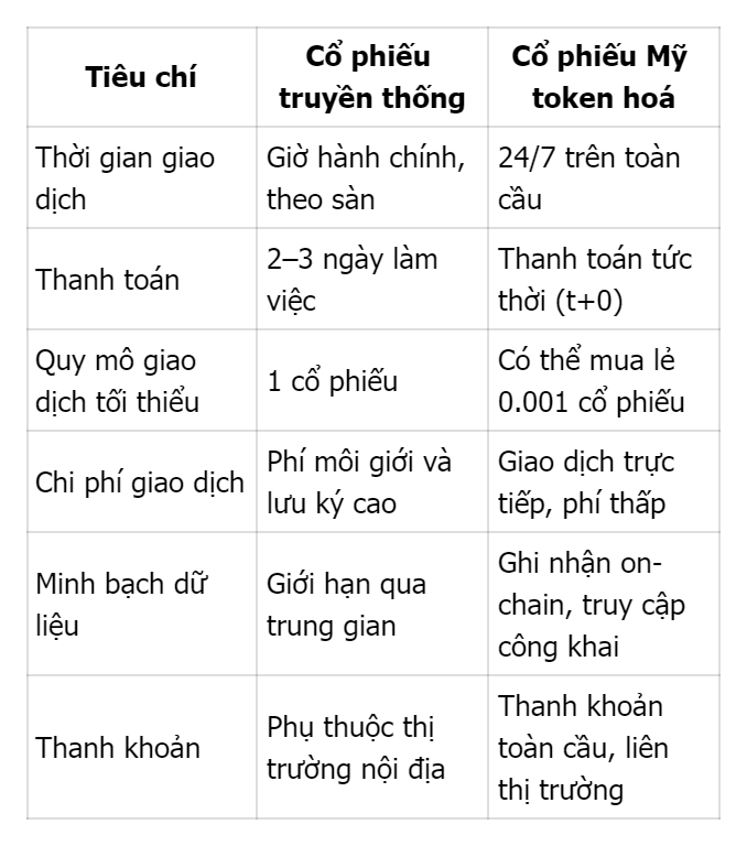Ưu điểm của cổ phiếu Mỹ token hoá so với cổ phiếu truyền thống