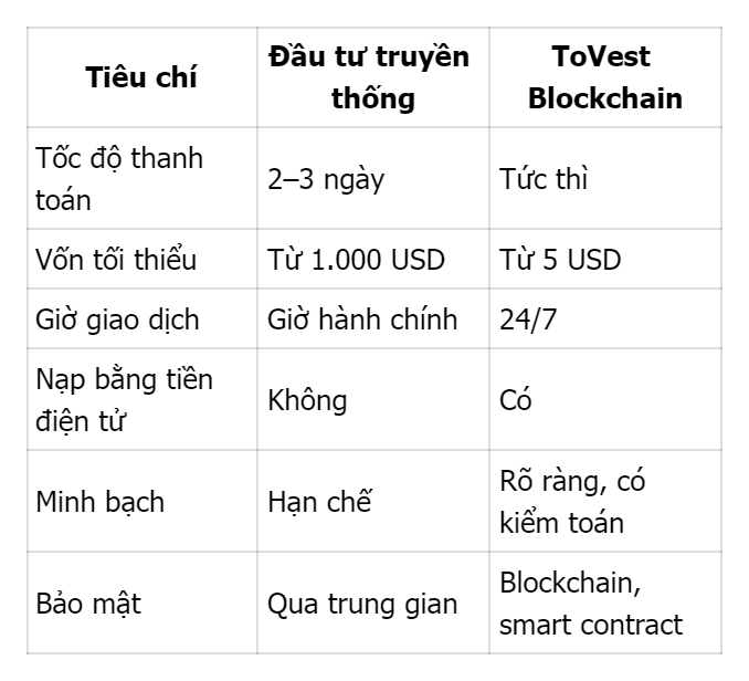 - Giao dịch và lưu ký minh bạch trên blockchain, dễ dàng kiểm toán độc lập.