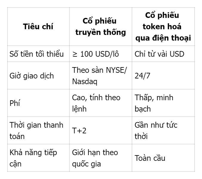 Lợi ích mua cổ phiếu Mỹ qua điện thoại với token hoá
