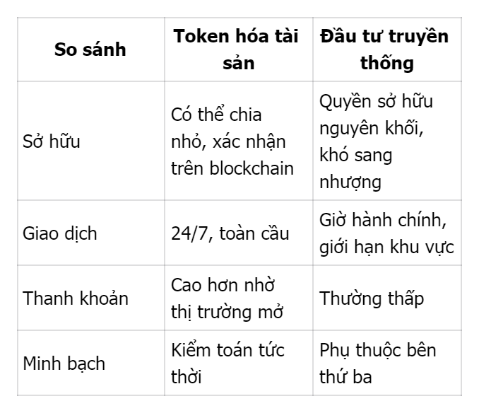 Token hóa đang tái định nghĩa cách con người đầu tư vào tài sản thật. Một số ưu điểm nổi bật gồm: