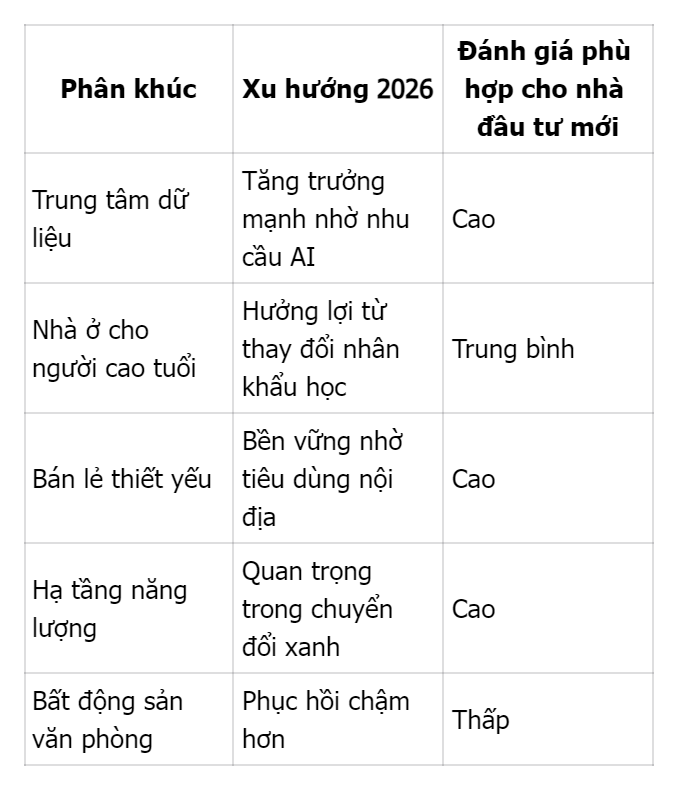 Với môi trường lãi suất dần ổn định, các tài sản thực dạng “core” hoặc “core-plus” trở thành lựa chọn hợp lý cho nhà đầu tư mới muốn vừa học vừa đầu tư hiệu quả.
