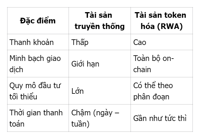 Tài sản thế giới thực (RWA) là những tài sản vật lý như bất động sản, vàng, cổ phiếu, hay trái phiếu được mã hóa thành token kỹ thuật số trên blockchain. Quá trình này cho phép các tài sản truyền thống – vốn kém thanh khoản và khó chia nhỏ – trở nên dễ tiếp cận hơn với mọi nhà đầu tư.